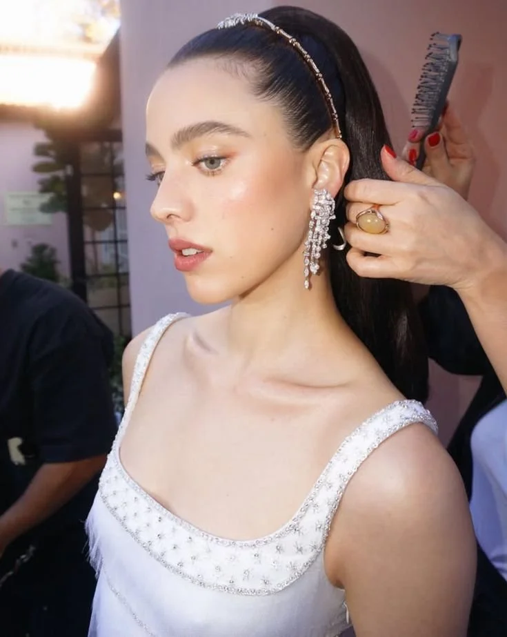 Accessories are your chance to add an extra pop of color, shine, or personality to your look. I love using this moment to incorporate little sparkly something your hair — when the sun hits it, you get those subtle little glimmers on camera. It’s magic.