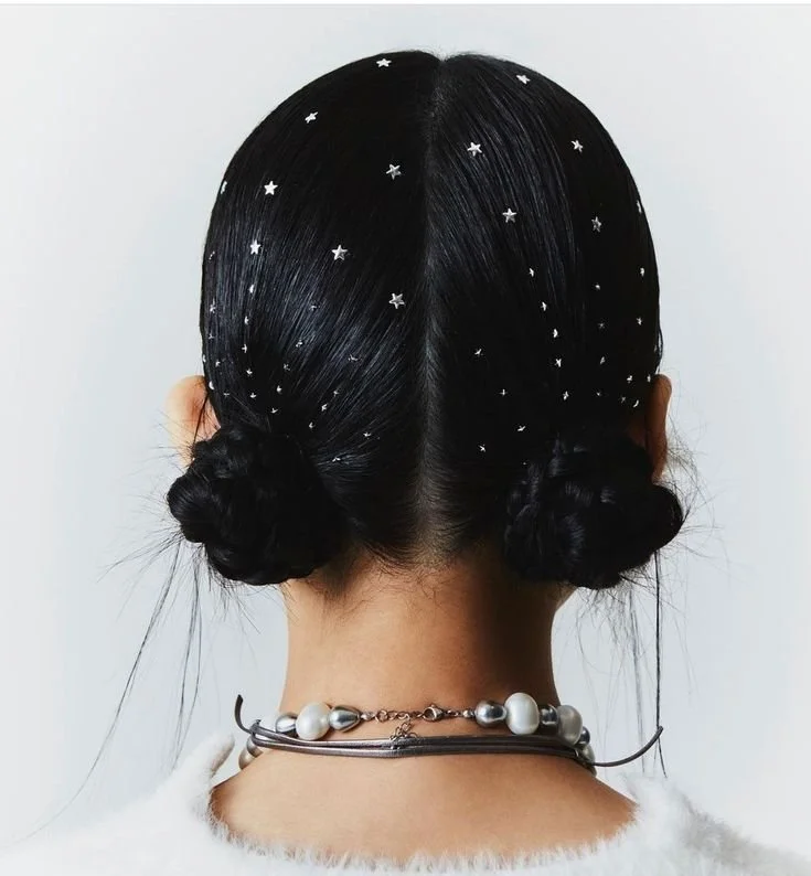 One of my favorites. It keeps your look relaxed while controlling the front. You can hide a small ponytail at the low back, or secure front pieces with fun clips behind the ears. I love adding playful pins — it looks super cute and whimsical.